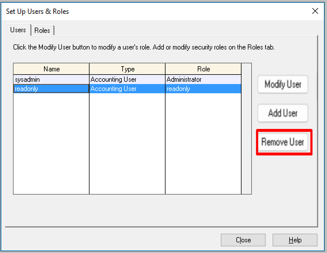 Open Sage 50 as single user mode Click the setup on the top menu then select setup users Then select the user you want delete and click remove user. please note you can not remove the owner of the database.